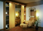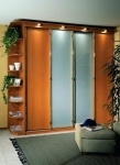 Шкаф-купе, двери - панели ,ДСП (возможно зеркало или стекло), подсветка.